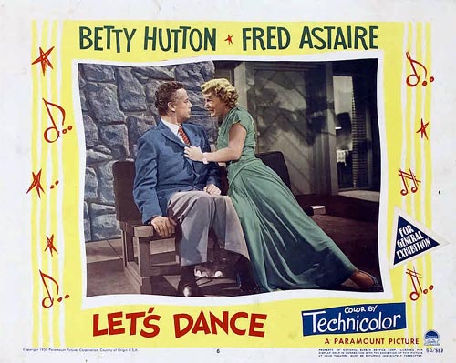 It was rumored that Betty and Fred Astaire did not get along on the set of "Let's Dance." When asked about it years later, Astaire stated, "I certainly never feuded with Betty Hutton or anyone else. Betty was the only one who made me blush, though - I couldn't repeat what she said in front of ladies."