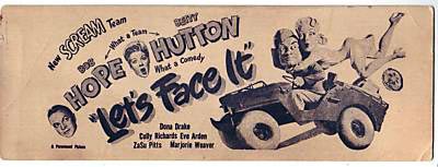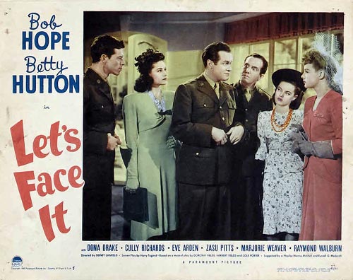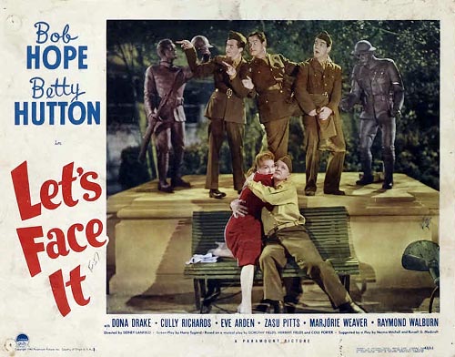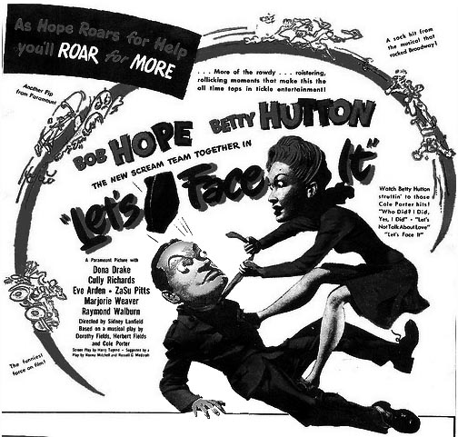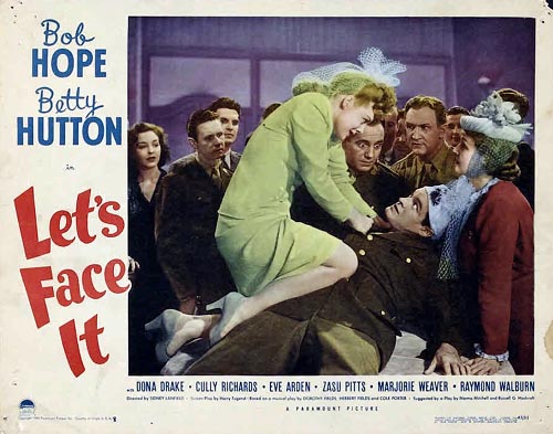 Betty and Bob Hope reportedly started writing a musical comedy during the filming of "Let's Face It," but it remained incomplete after Bob took off on a tour of Army camps.